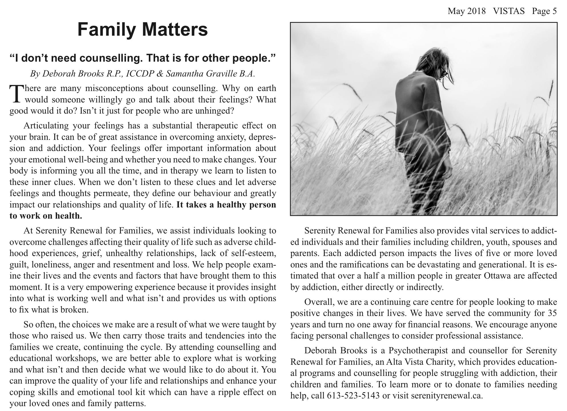 I don't need counselling. That is for other people - AltaVista-Canterbury Community Newspaper, vol 37 no 5
